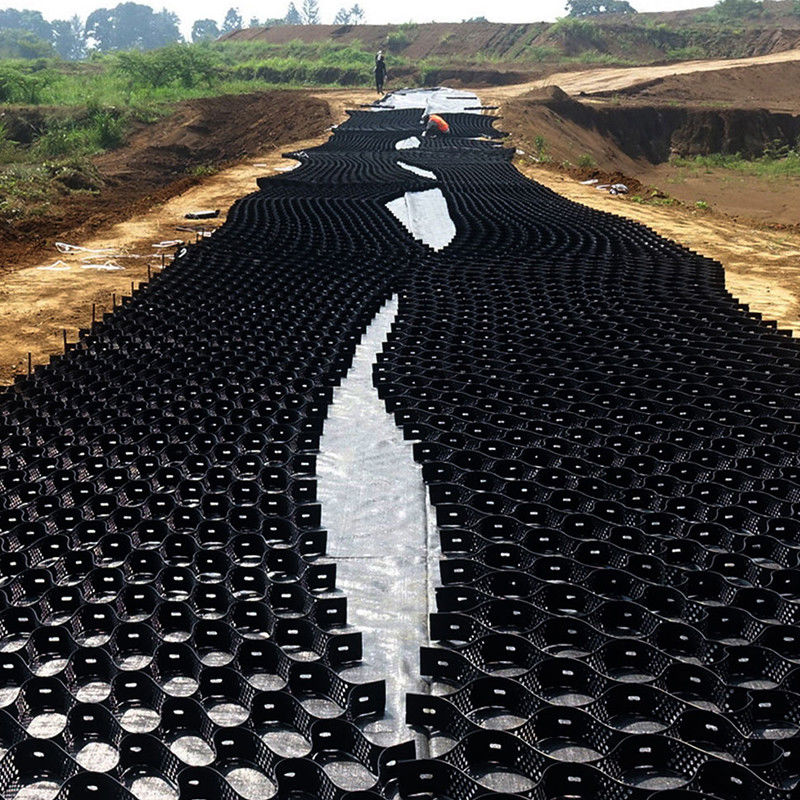 Geocell est machiné pour des applications de stabilisation de sol, il est employé pour aider à améliorer la représentation des matériaux de construction et des traitements standard d'érosion-contrôle.